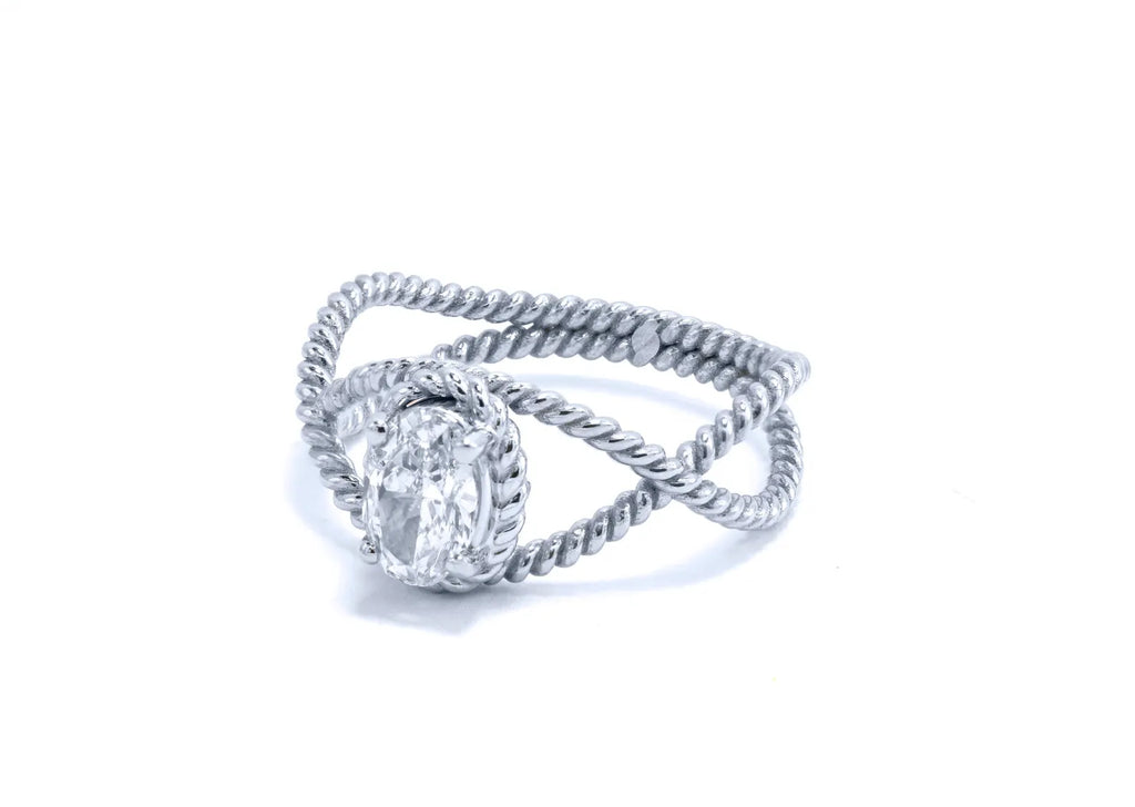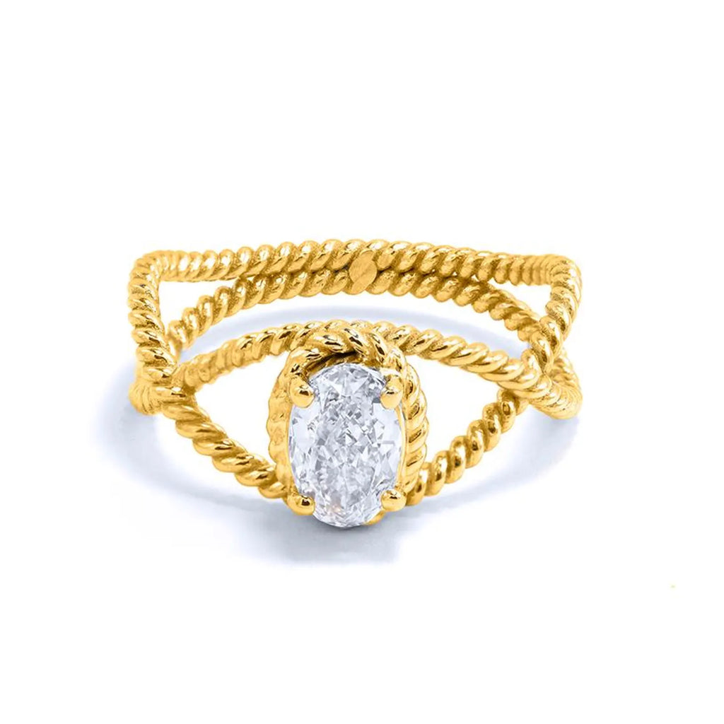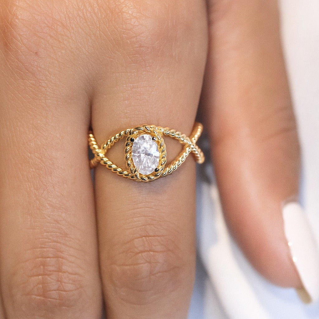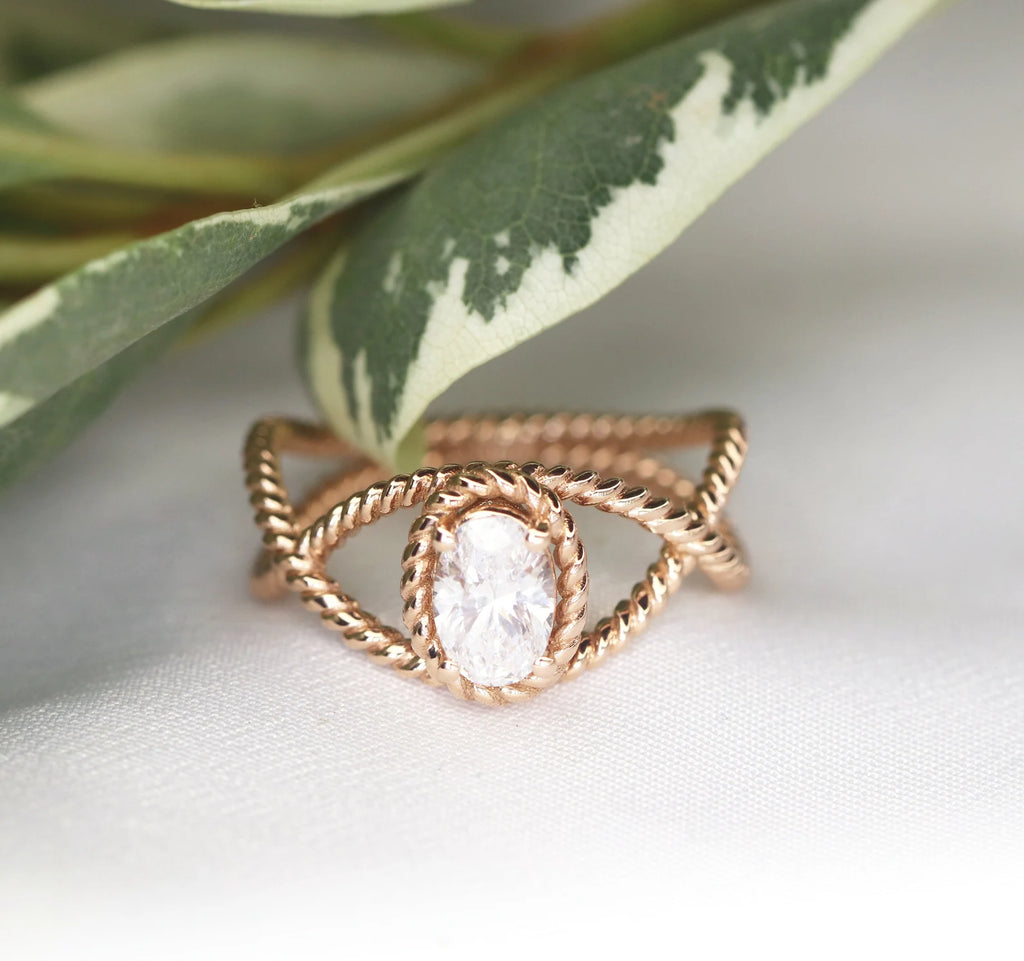 טבעת מעודנת זו עשויה בעבודת יד מזהב 14 קראט מלא ומציגה בלב יהלום סגלגל טבעי מדהים במשקל 0.70 קראט. הטבעת כוללת עיצוב טוויסט אלגנטי, המסמל שני חיים שלובים זה בזה בצורה יפה, בעוד שהיהלום הסגלגל מקרין זוהר וחן נצחי.