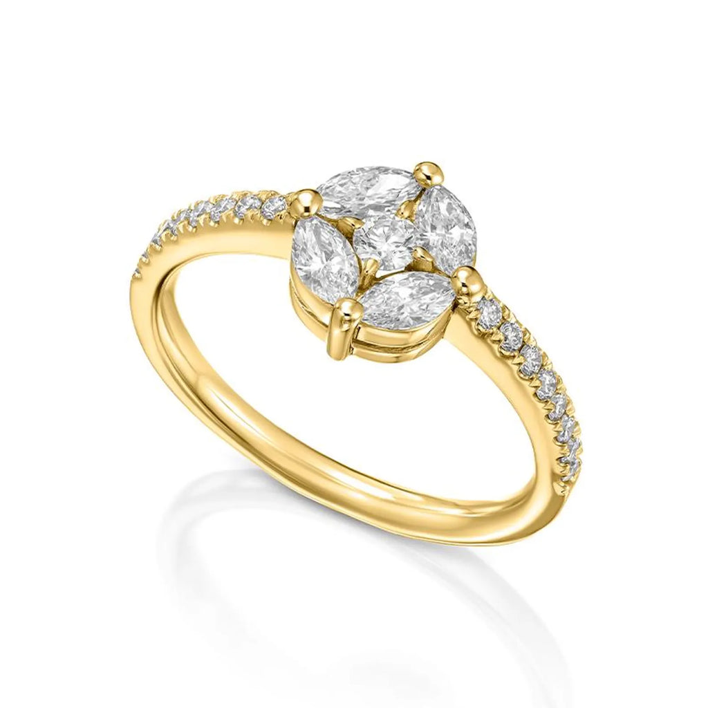 טבעת אירוסין ייחודית מרקיזה מזהב עם יהלום