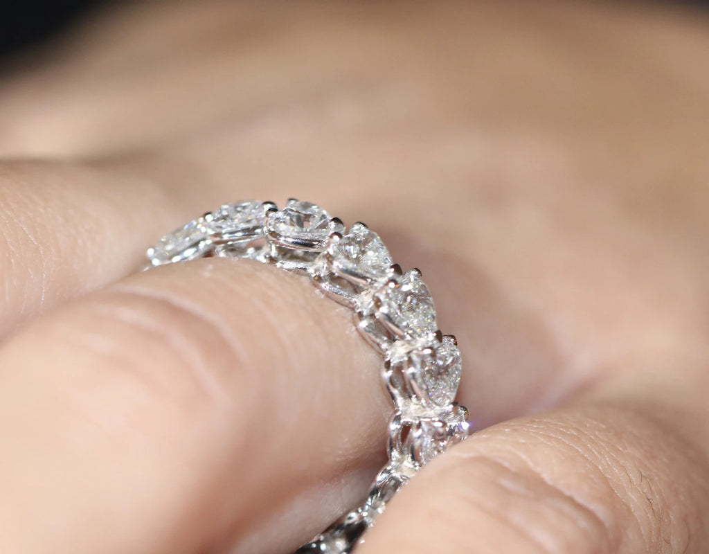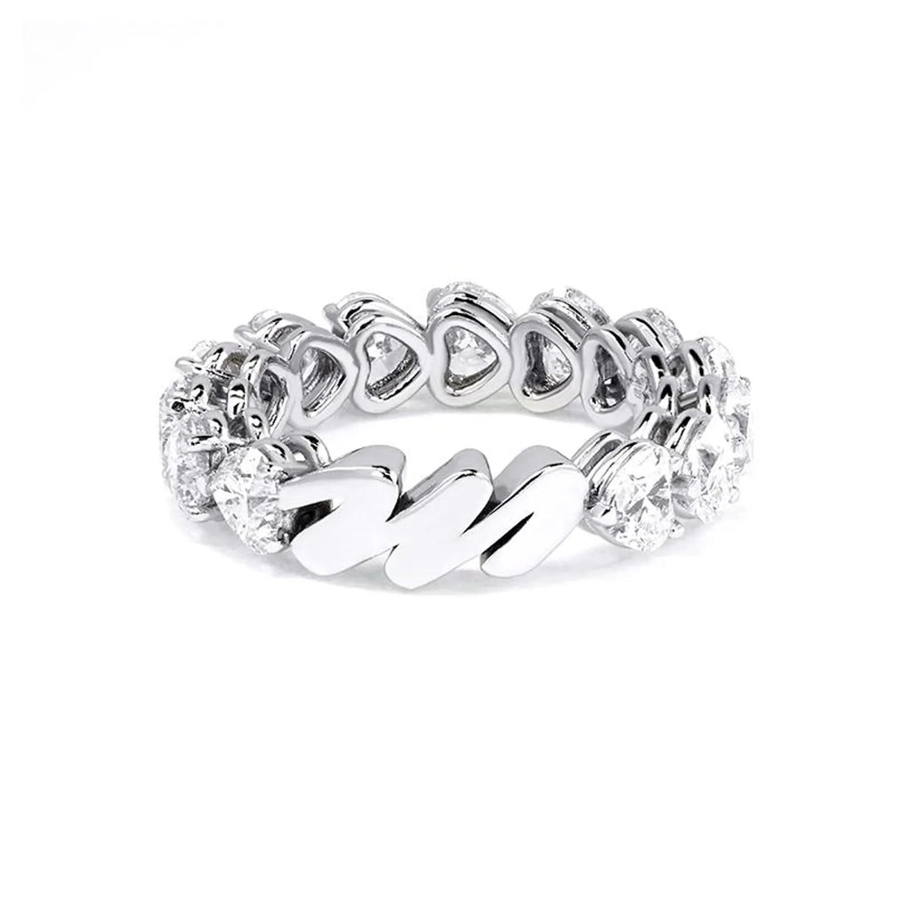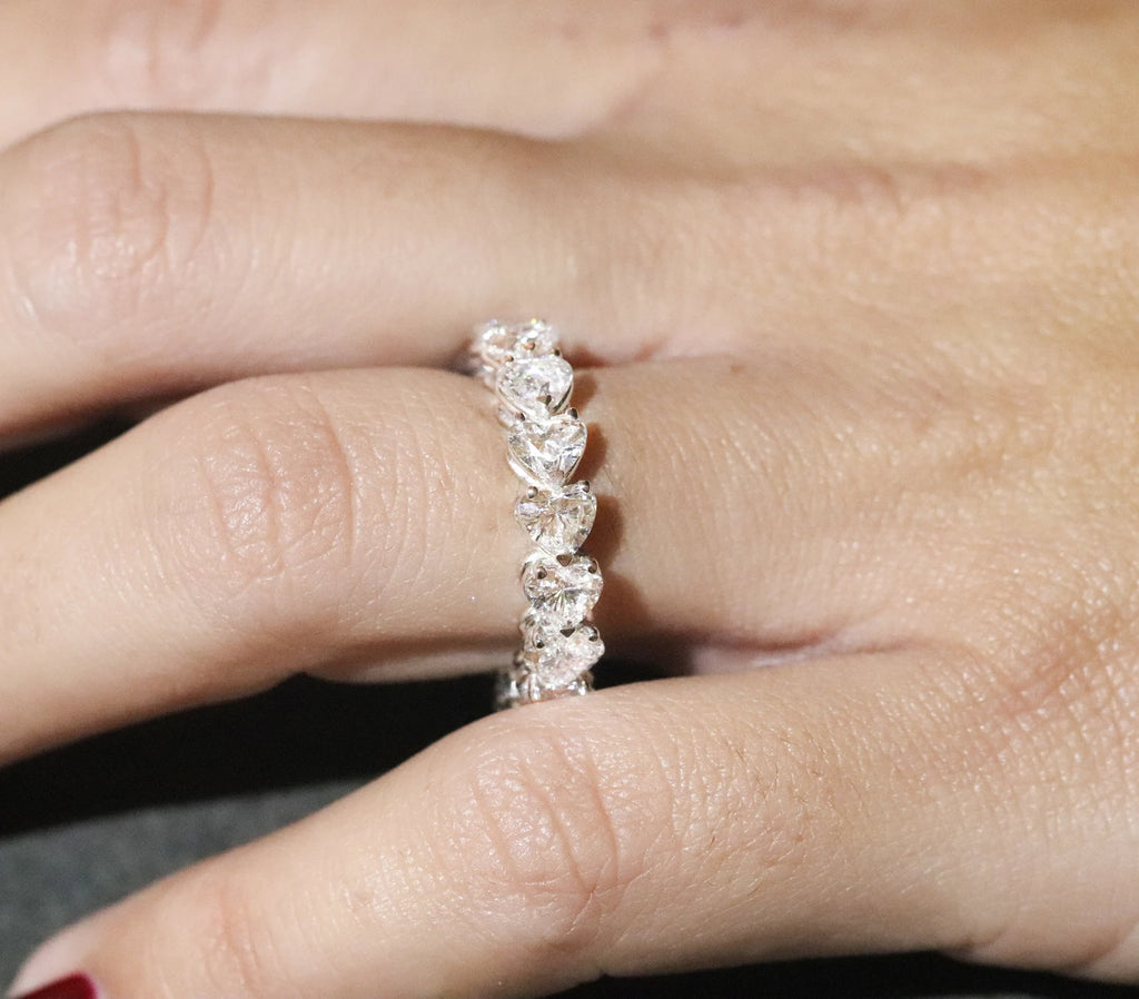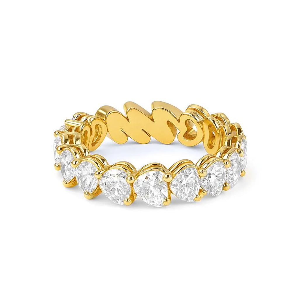 טבעת נישואין מדהימה זו, עשויה בעבודת יד להפליא מזהב 14 קראט מלא, משובצת יהלומים טבעיים בצורת לב מבריקים במשקל כולל של 3.5 קראט, המסמלים רומנטיקה ומסירות נצחית. מה שהופך את הטבעת הזו לייחודית באמת הוא האפשרות להתאים אותה אישית עם ראשי התיבות שלכם, ולהפוך עיצוב נצחי לאוצר בעל משמעות עמוקה.