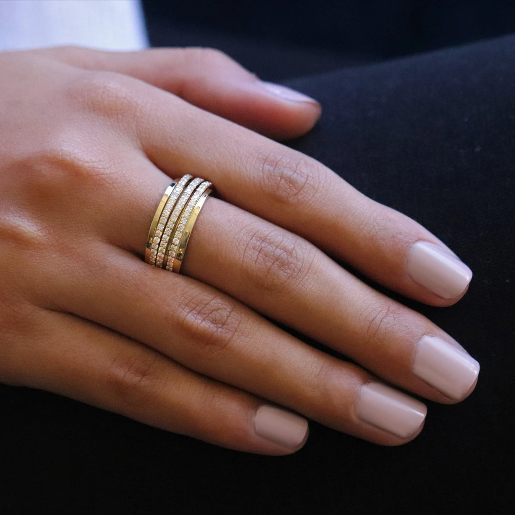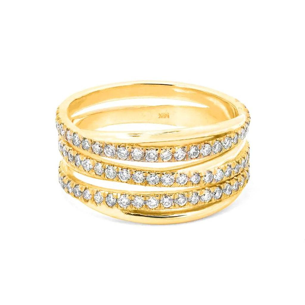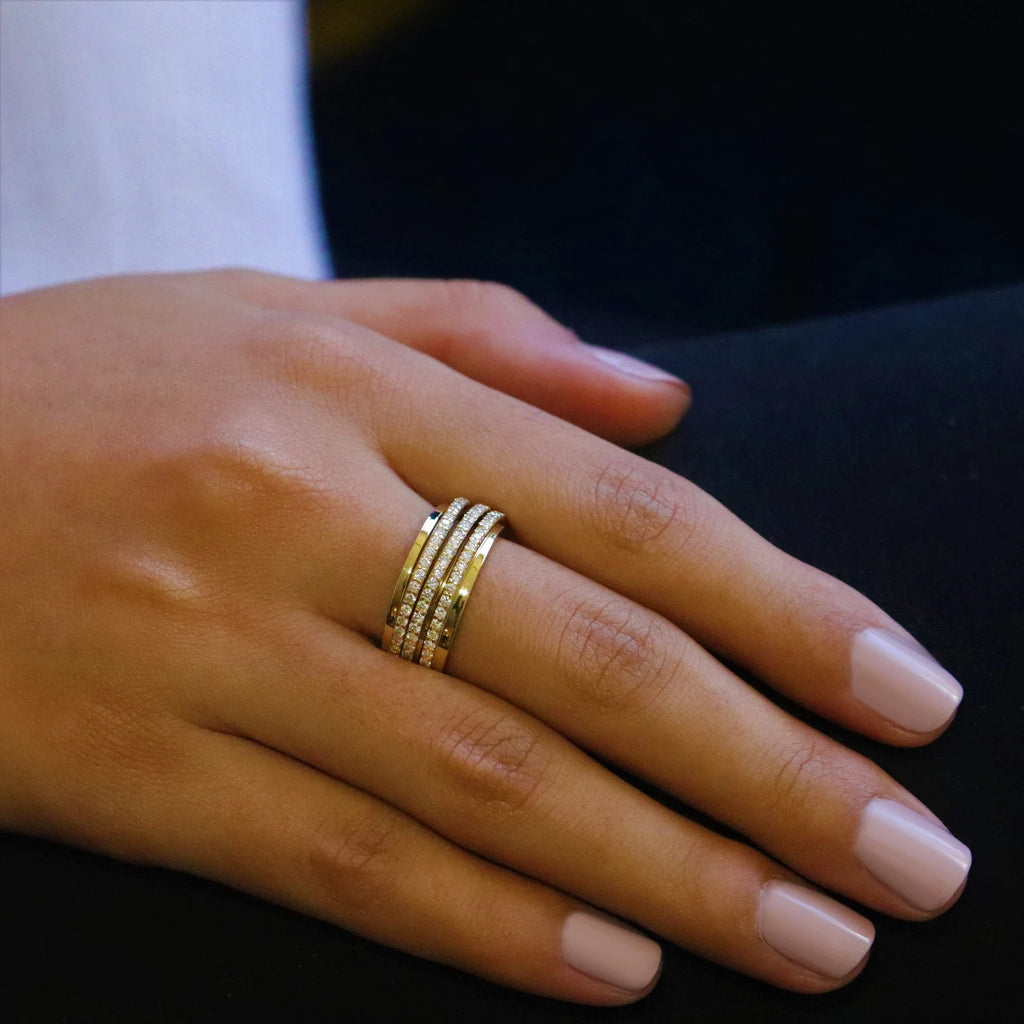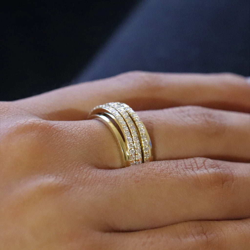 טבעת נישואין בסגנון שלוש שורות מזהב עם יהלומים