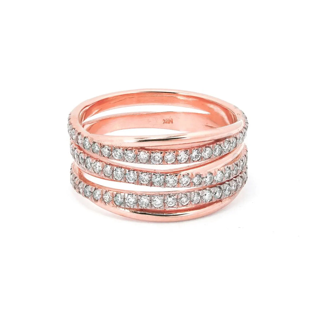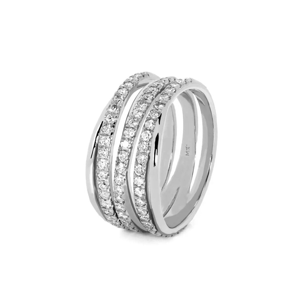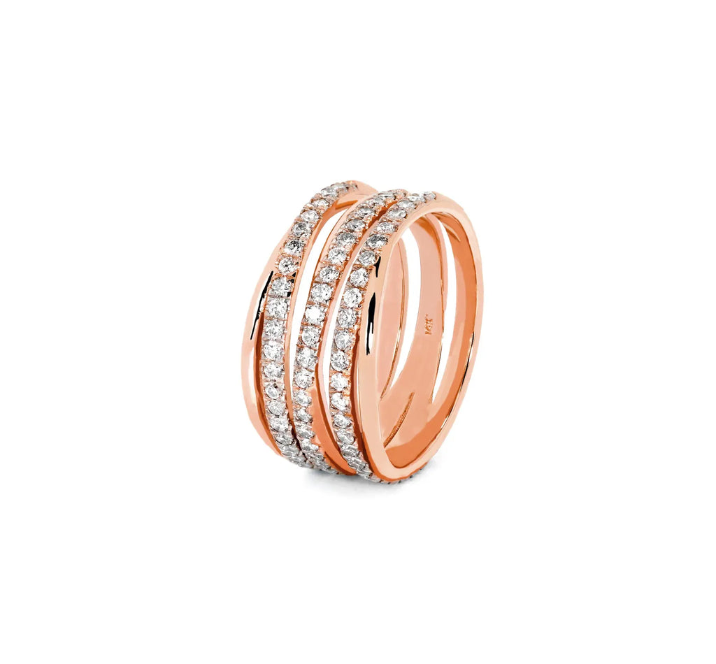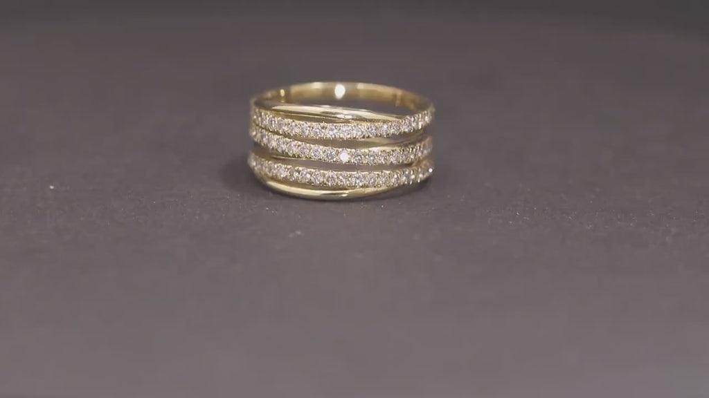 טבעת נישואין בסגנון שלוש שורות מזהב עם יהלומים