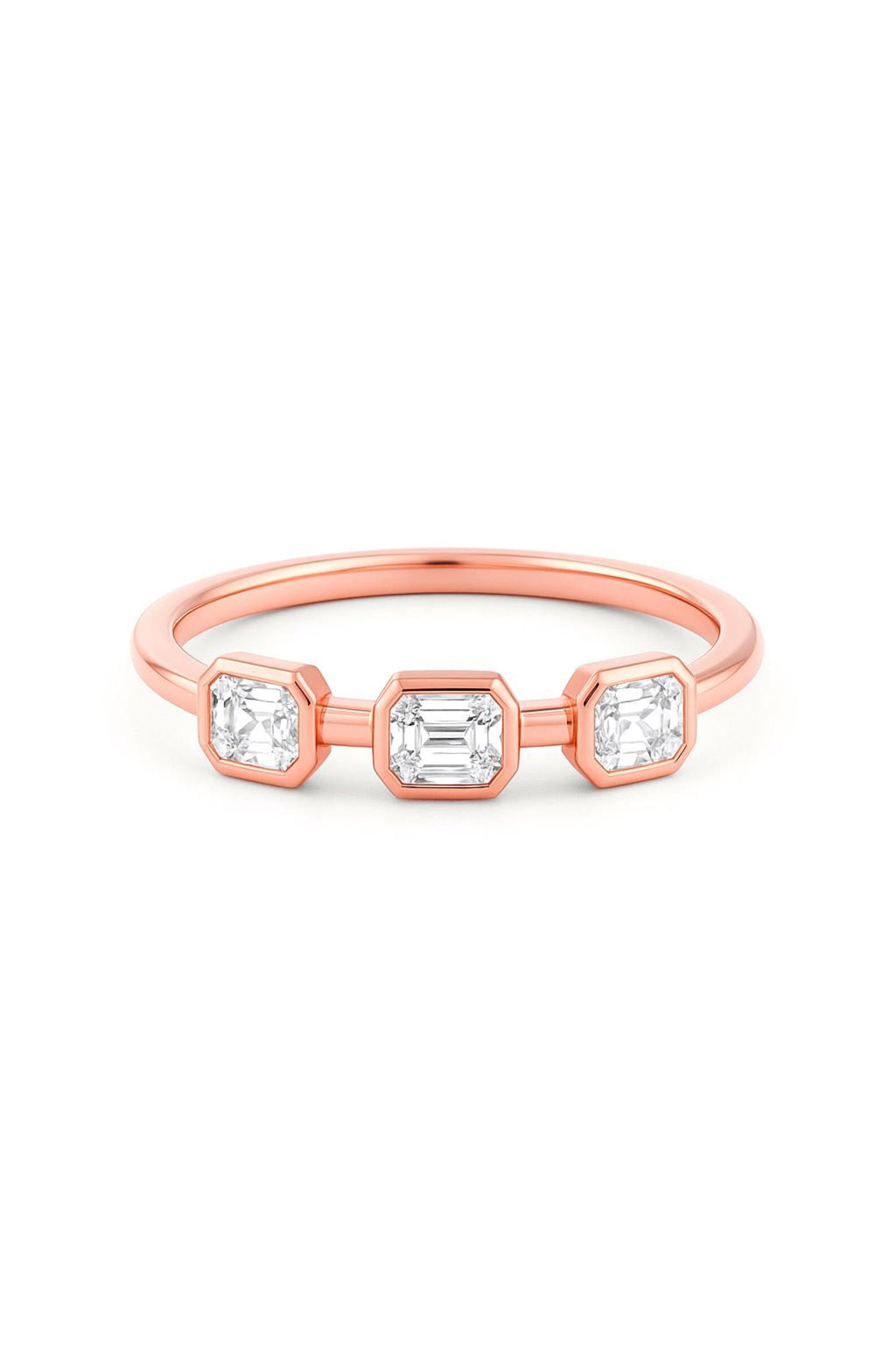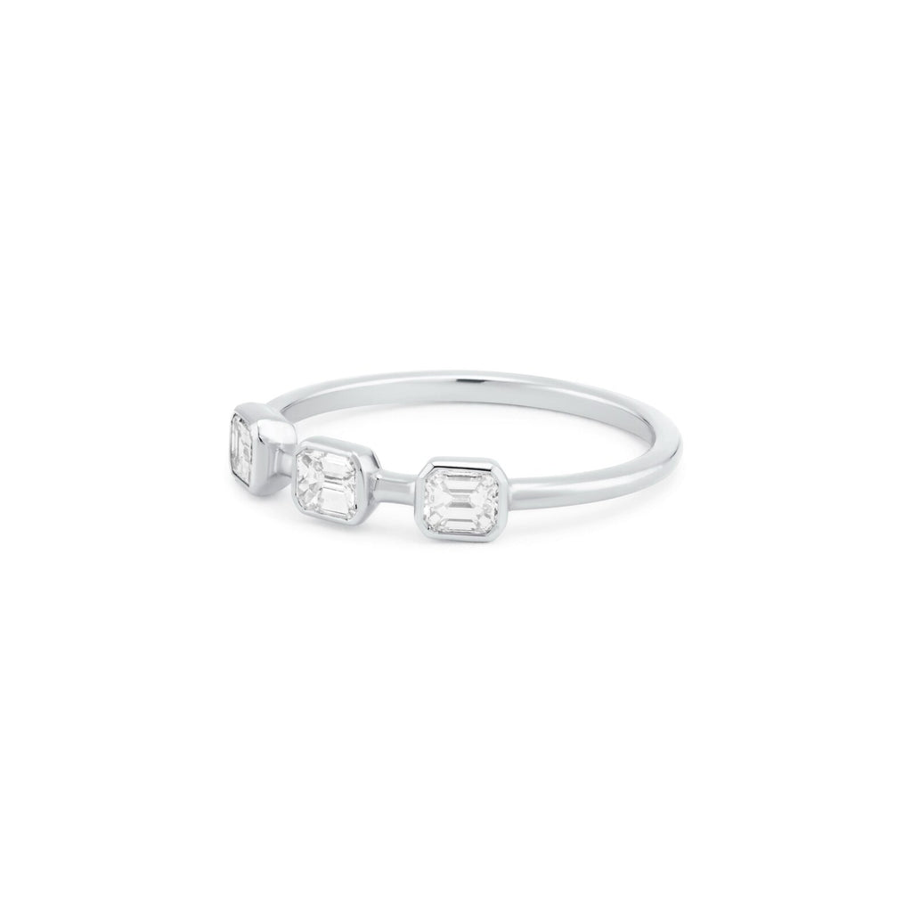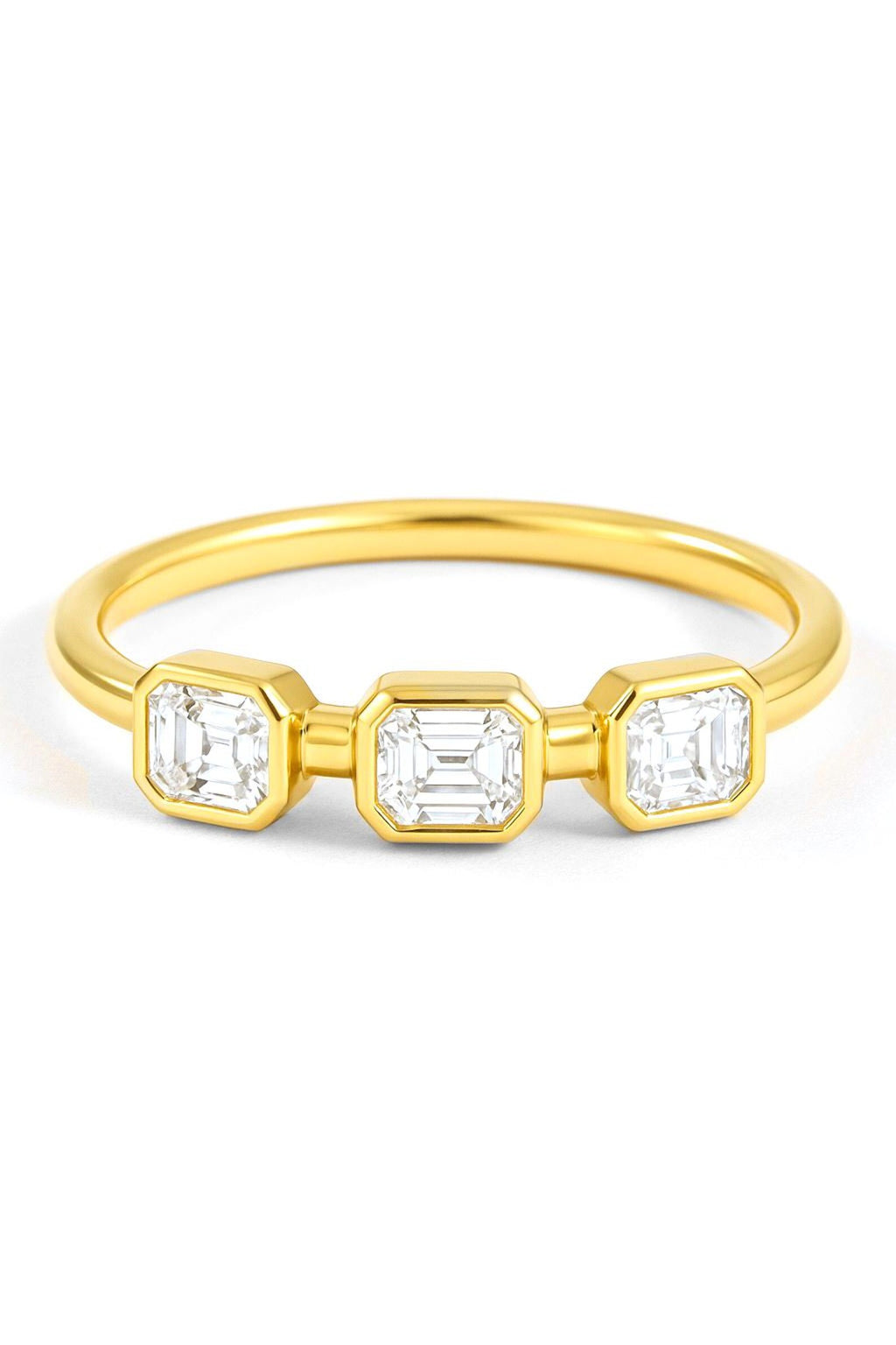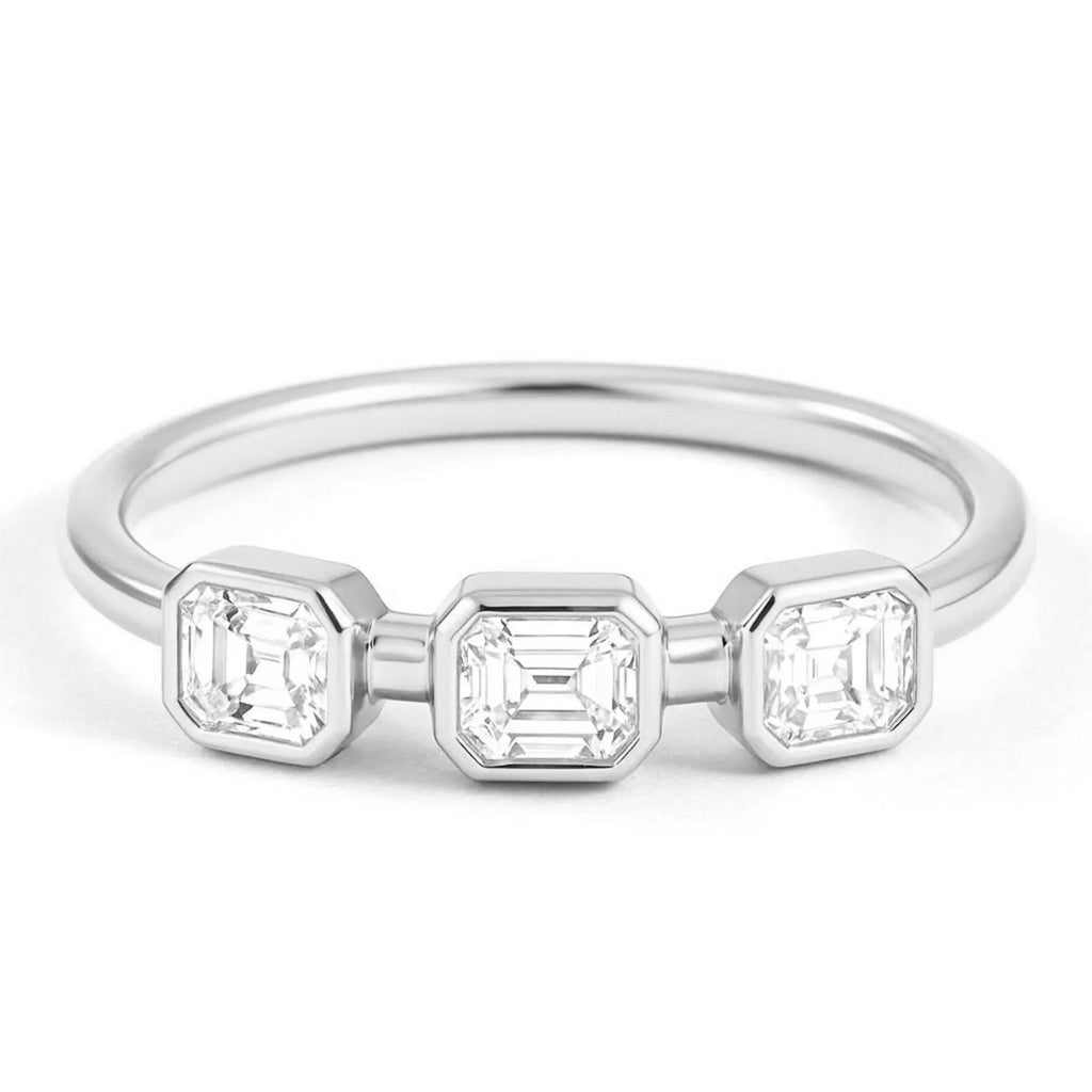 טבעת בצורת אזמרגד משובצת שלוש אבנים בזהב משובץ יהלום