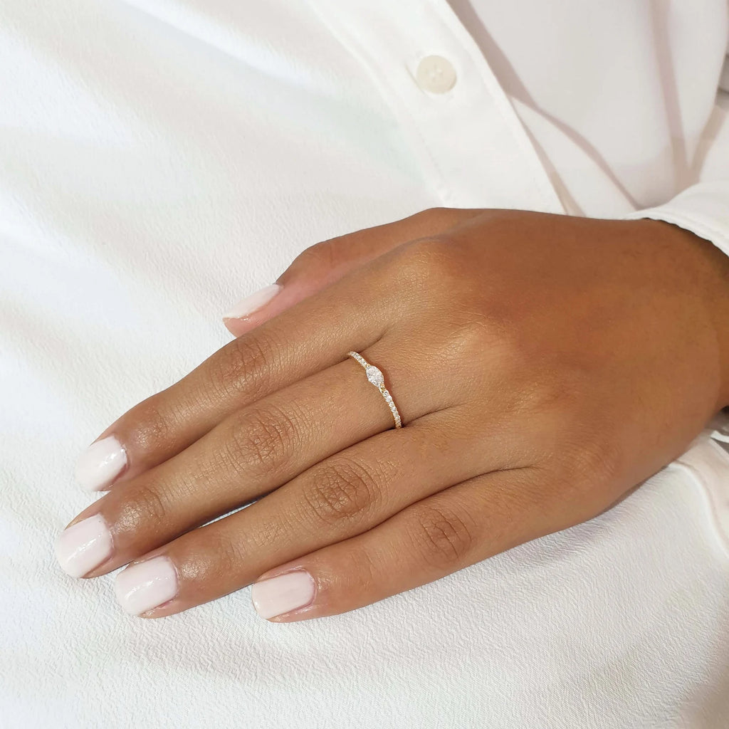 טבעת יהלום מנצנצת מרקיז בזהב