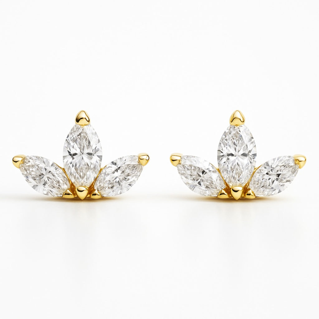טבעת V משובצת זהב משובצת ביהלום משובצת ב-Pear & Pave
