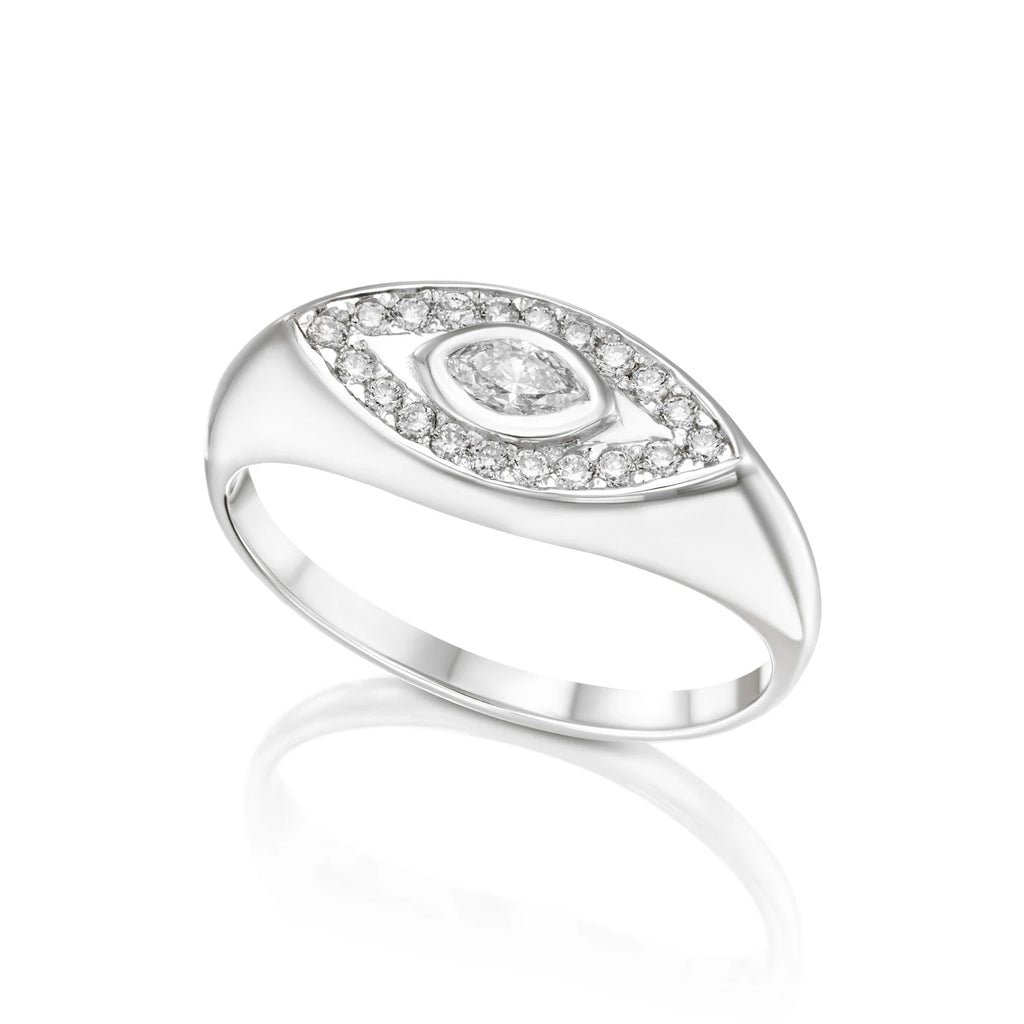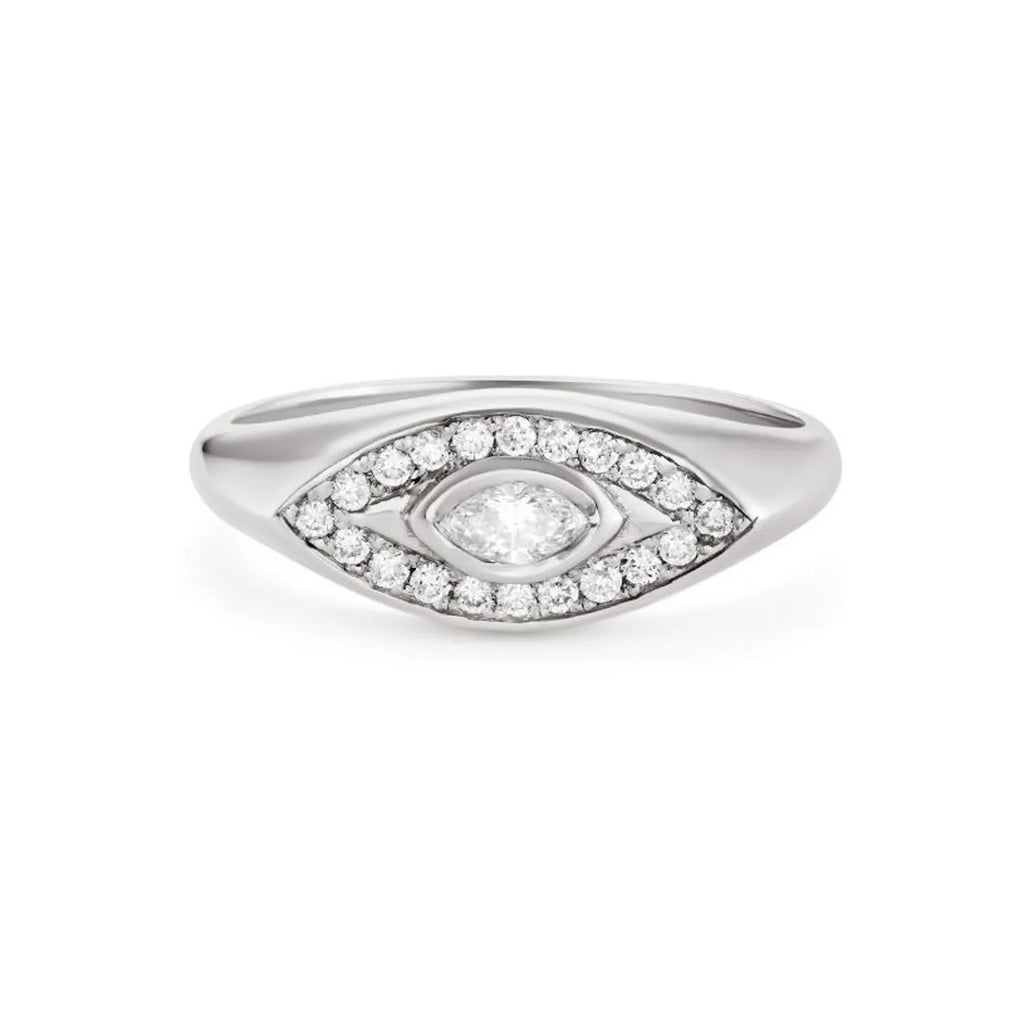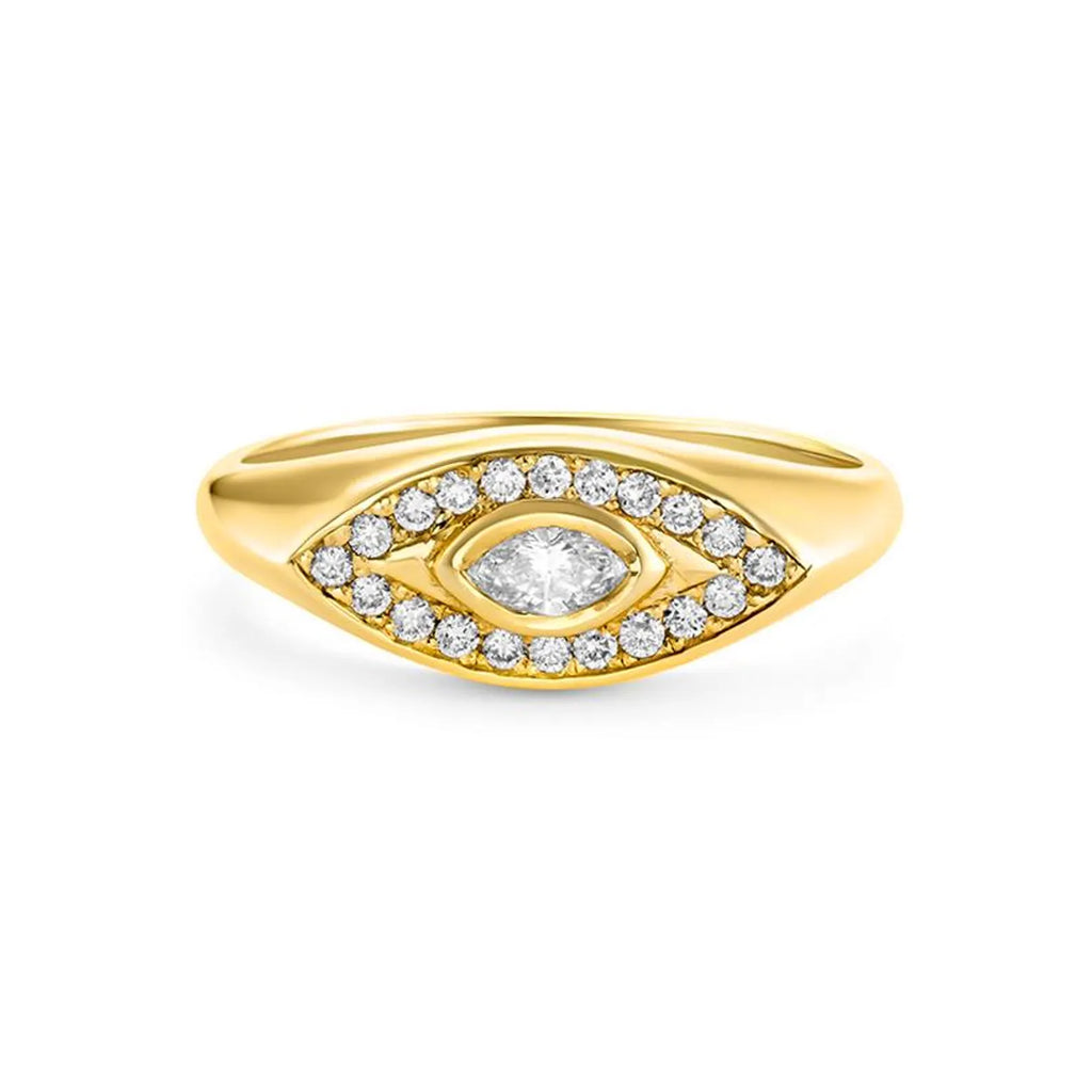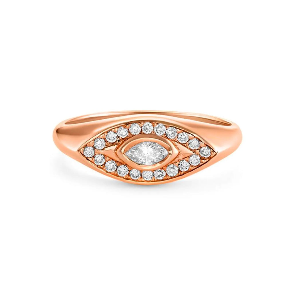 טבעת Pear & Pave V זו, עשויה בעבודת יד עדינה מזהב 14 קראט מלא, משובצת ביהלום חינני בצורת אגס משובץ בשורה של יהלומים נוצצים משובצים בפאבה. העיצוב האלגנטי בצורת V מושך את העין, מסמל כוח, כיוון ויופי של איזון.