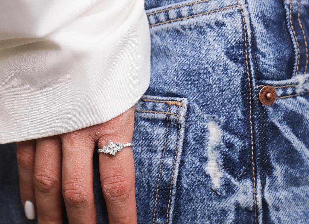 טבעת אירוסין בצורת לב משולשת בזהב עם יהלום
