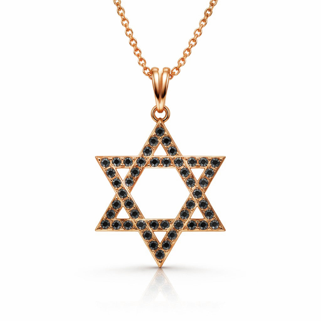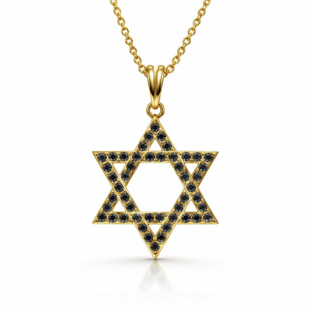Star of David Necklace in 14K Gold – 1/4 CTW Black Diamond